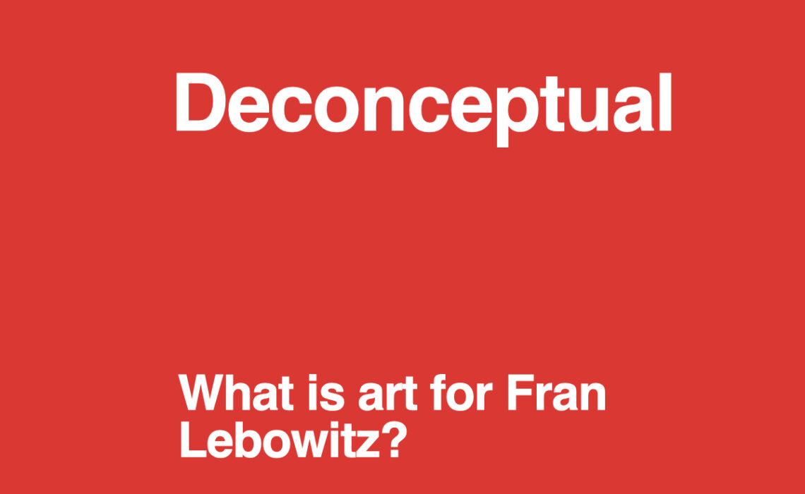 A few weeks ago Netflix released one of the most interesting series in recent months. Directed by Martin Scorsese and starring writer Fran Lebowitz, Pretend It’s a City exposes in 7 chapters several of the most transcendent topics about one of the most emblematic places in the world through a question: is New York a city? From a critical and acute perspective—how could it be otherwise with Lebowitz as the main character—.Pretend It’s a City reaches one of its highest points in the second chapter, dedicated to cultural manifestations. Though from a scathing and lapidary perspective, the New York-based writer cleverly exposes some of the most common perspectives around the visual arts. I stop here to explore two of them: